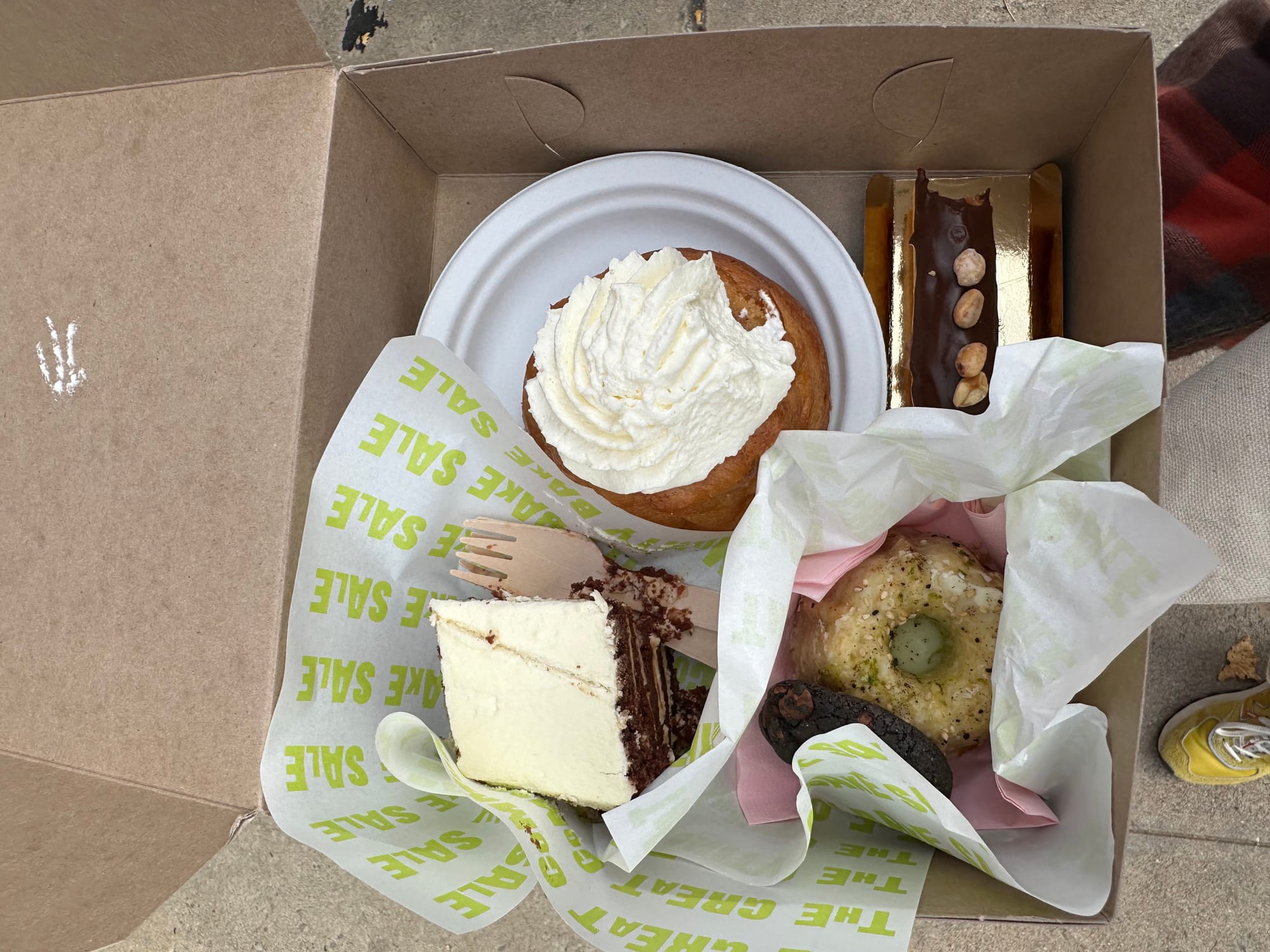 On Saturday, Maris and I went to the Great Community Bake Sale in Manhattan's Financial District. A hundred or so of New York City's best bakers/pastry chefs donated their time and effort, selling a wild variety of snacks. Excellent pal Natasha Pickowicz has been running this event for years, raising over $200,000 for charity. We picked up a bunch of baked goods (I had to! It was for a good cause!) including an EXTREMELY good Snickers Eclair. I am finishing up a little (terrific) piece of lemon bundt cake as I write this newsletter. IF YOU ARE INTRIGUED BY THIS NEWS, Natasha has written a cook book about dessert and has one about hot pot on the way!