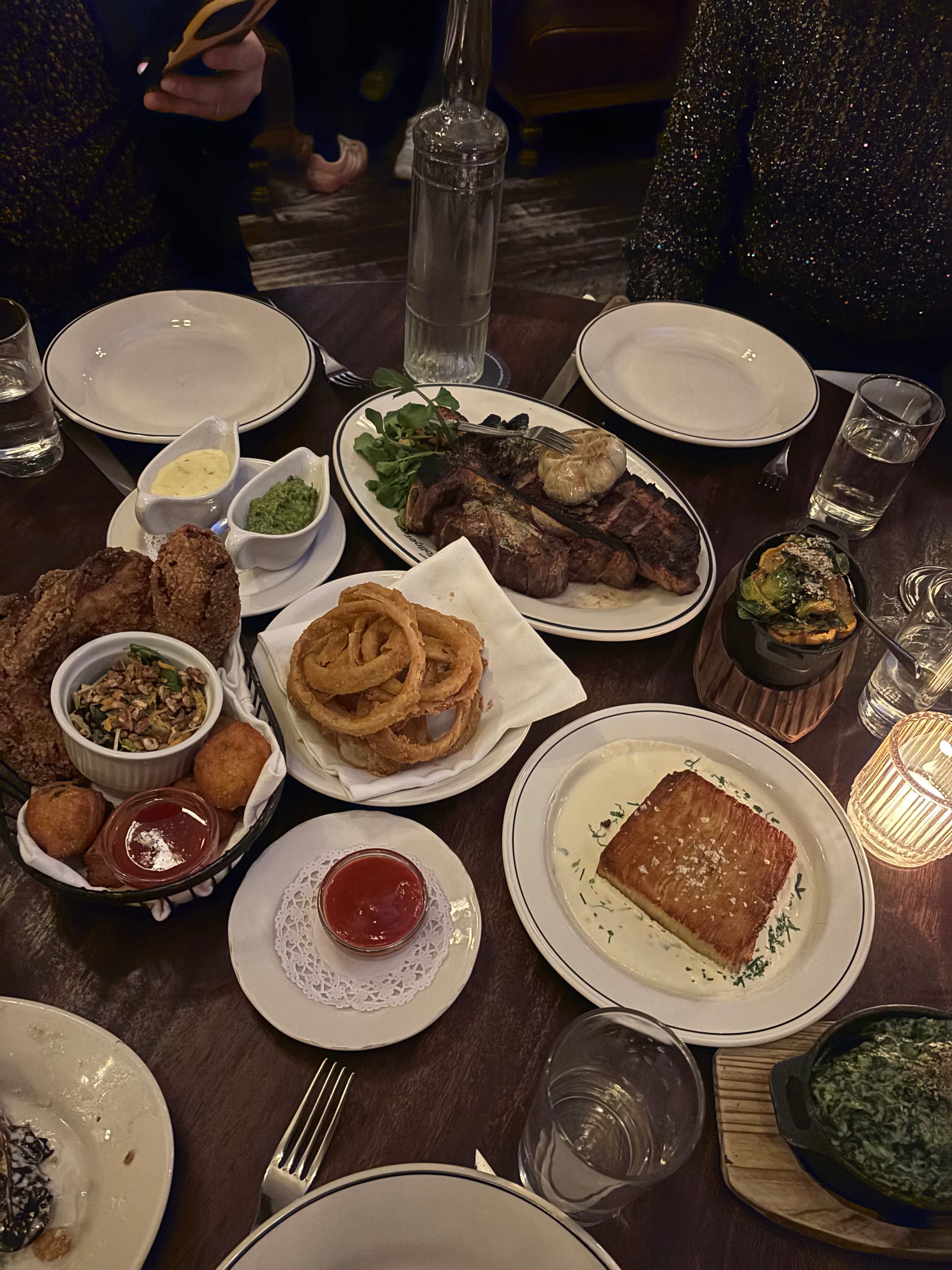 I'm feeling good, if sleepy, getting back to work after a fairly recreational holiday week. Last week I ate like I was on death row, mostly Chinese food but also a night out at Gage & Tollner with Maris and some friends. After dinner, we got seats at the Sunken Harbor Club, an adjacent shipwreck themed bar with a tiki-heavy drink menu and a Times Square New Year's Eve Chaos energy that feels almost antithetical to the classic steakhouse warmth of the restaurant below. The fog machine was so intense that someone in our party (I will not snitch) vaped openly and undetected in the barroom. The sesame martini, however, immediately planted itself on my list of all time favorite cocktails. It was like a cucumber salad full of gin, in a good way I swear.