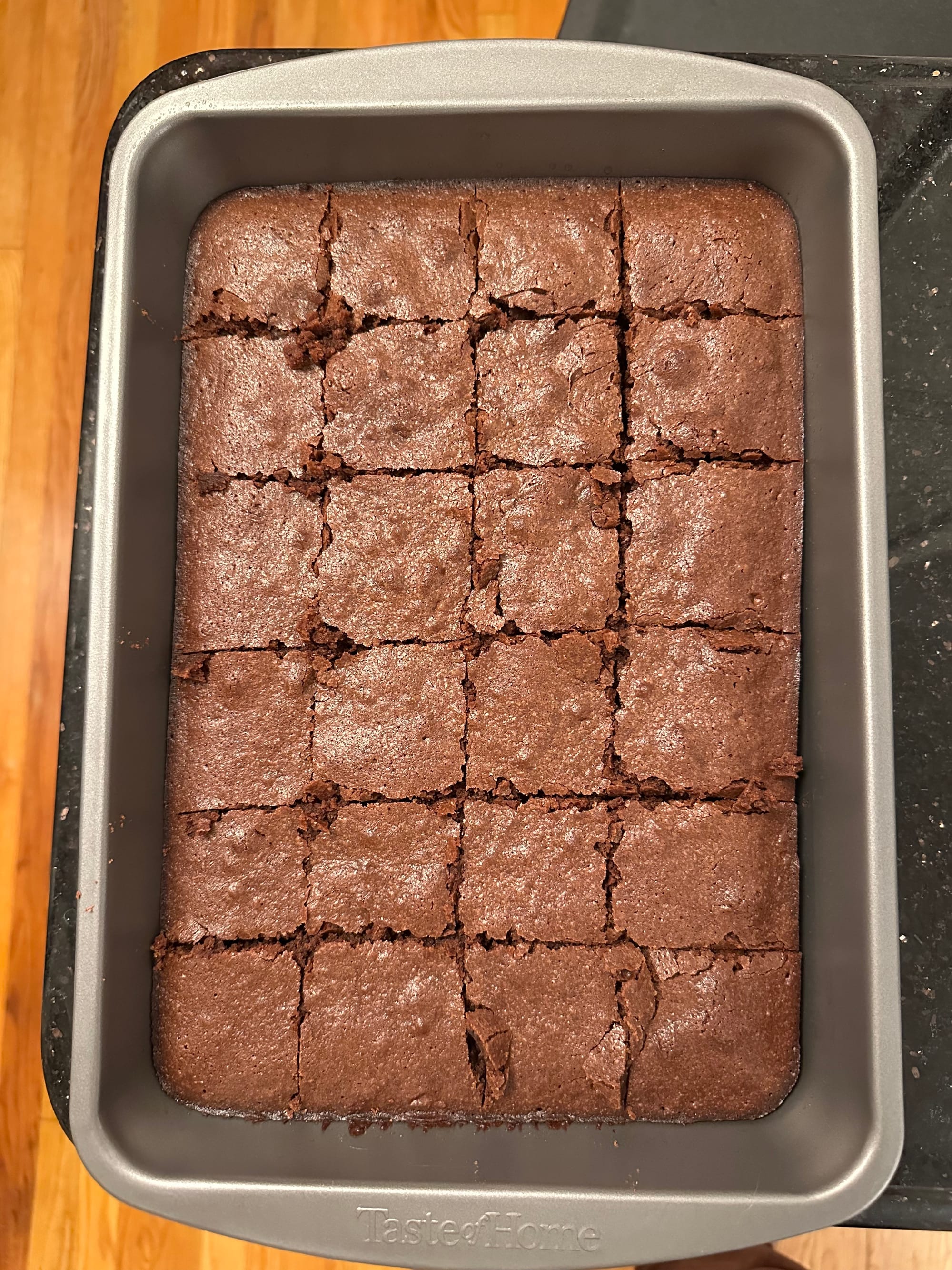 I baked brownies for a little gathering on Christmas Eve, and while I did not slice them especially evenly, the flavor and texture were uniformly distributed, and that's what counts. They are pictured below for proof if not aesthetics.